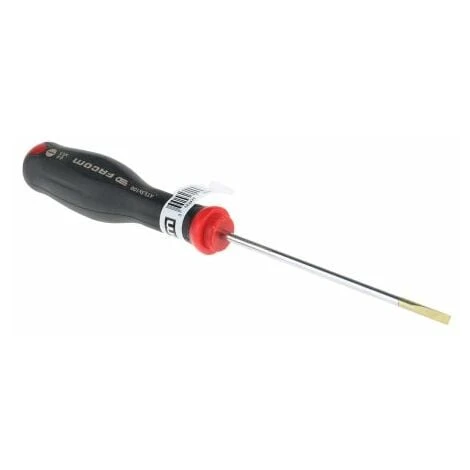 Tournevis plat FACOM PROTWIST®. Les tournevis professionnels PROTWIST® incluent une prise ergonomique et confortable pour le travail intensif. La poignée bi-matière fournit une haute résistance aux chocs, aux produits chimiques, à l’huile et aux hydrocarbures. Le codage couleur permet l’identification facile du type de tête. Spécifications de la série de tournevis à tête fendue AN : Tournevis d’AN avec lames extra-longues pour accéder aux zones difficiles et complexes à atteindre. Lame cylindrique pour l’accès dans les recoins, avec une extrémité plate. Lame en chrome mat, tête traitée noire. Codage couleur : rouge Caractéristiques et avantages : Qualité professionnelle couverte par la garantie à vie des outils Facom Manchon moulé en polyamide et polyuréthane pour une meilleure résistance et une prise en main naturelle Le codage couleur permet l’identification facile du type de tête. Manche à conception ergonomique et confortable pour une prise en main sûre et un couple plus élevé Haute résistance aux chocs, aux produits chimiques, à l’huile et aux hydrocarbures Applications typiques : Ce tournevis est généralement utilisé par les artisans professionnels, les techniciens ou les bricoleurs. Le tournevis est l’un des outils manuels les plus importants dans n’importe quel kit de technicien. Dans de nombreuses situations et professions, un tournevis est indispensable à la réalisation de tâches spécifiques en termes de desserrage et de serrage de fixations. La plupart des types communs de tournevis, tels que les tournevis à lame plate ou à tête cruciforme, sont adaptés à une très large gamme d’applications. Ils sont principalement utilisés dans les applications suivantes : Production mécanique et industrielle Menuiserie/charpenterie Fixation du bois au métal Automobile Les tournevis de spécialistes, tels que les tournevis TORX, sextuple, Tri-Wing, etc., sont conçus pour des applications spécifiques telles que : Réparation électronique Ouverture de consoles : Xbox/PlayStation Ouverture de téléphones mobiles Ouverture de Macbook Homologations et certifications : NF ISO 8764-1 / NF ISO 8764-2 ISO 8764-1 / ISO 8764-2 DIN ISO 8764-1 / DIN ISO 8764-2 ASME B107.600 FAQ : Le tournevis est-t-il magnétique ? Non, ce tournevis n’est pas magnétique, mais il peut le devenir simplement grâce à l’un des magnétiseurs disponibles chez RS, par exemple l’article ; 667-3471 667-3471 Ce tournevis est-il homologué VDE ? Non, ce tournevis ne peut pas être utilisé avec des appareils électriques, car il n’a pas été conçu pour une utilisation sous tension, quelle qu’elle soit.