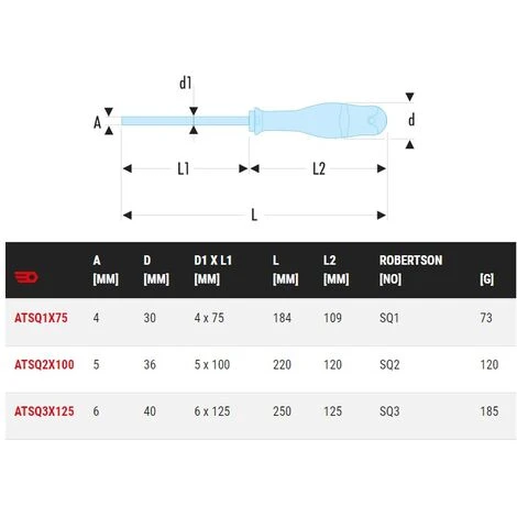 Ce tournevis protwist® pour vis à empreinte carrée Robertson ATSQ de la marque Facom dispose un manche Soft Grip qui offre plus de confort et plus de résistance aux agents chimiques. Il bénéficie d’un marquage laser garantissant une meilleure résistance à l’usure. En utilisation, il est muni des empreintes par commande numérique qui assure une meilleure adaptation de la vis en augmentant le transfert de couple et en réduisant l’usure.