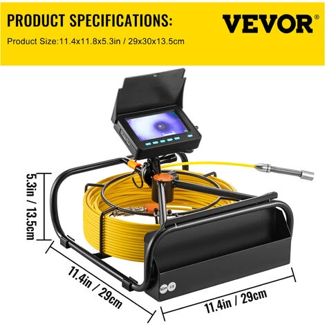 - Cable de 50 m & Devidoir de Cable Pratique : Le cable solide inclus est long de 50 m et tres robuste. La longueur etendue du cable facilite lacces aux endroits hors de notre portee pour linspection. En sommes, le kit de camera deinspection egout est livre avec un devidoir de cable pratique pour lorganisation des cables.