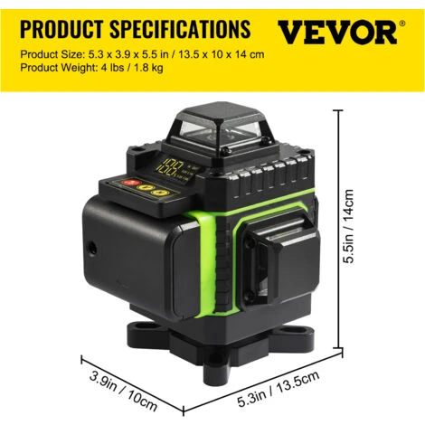- Couverture Complete 4 x 360° : 4 x 360° lignes laser fournissent une couverture de 360° pour une piece entiere, avec une portee de travail de 40 m de diametre. De plus, les lasers verts sont 4 fois plus brillants que les rouges, plus visibles en plein soleil. Les fonctions de commande sans fil permettent un controle complet par lutilisateur, de sorte que vous pouvez controler les lignes laser a n’importe quel angle.