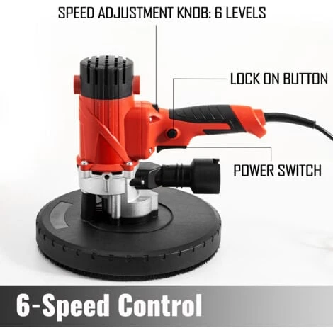 Cette ponceuse orbitale filaire est légère et facile à utiliser. Il convient à un usage commercial et privé, parfait pour le meulage et le polissage des cloisons sèches, des plafonds, des murs intérieurs et extérieurs, des adhésifs et du plâtre en vrac.