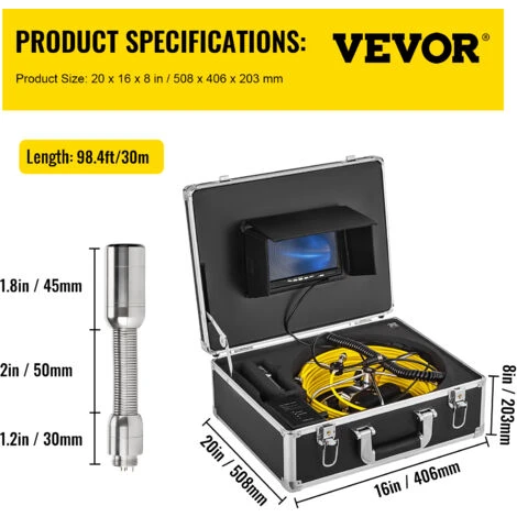 - Performance Exceptionnelle : Notre camera deinspection des canalisations deegout permet de visualiser facilement les endroits difficiles deacces grace a un cable de 98,4 ‘ / 30 m. Elle peut traverser n’importe quel environnement souterrain etroit, vous offrant une grande experience deenregistrement deimages/video HD. Il est compatible avec une camera de 23 mm de diametre et convient a linspection de tuyaux de 25 a 200 mm de diametre.