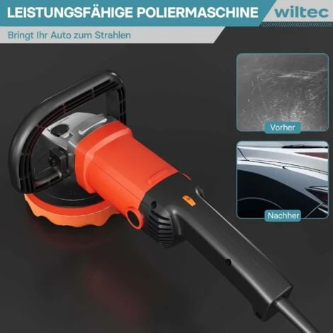 | Accessoires | 1 x Disque de ponçage Ø180 mm 1 x Disque de support (avec Velcro) Ø 150 mm 1 x Disque de support (avec Velcro) Ø 180 mm 1 x Patin à polir (tampon de laine) Ø 180 mm 1 x Support de guidage 1 x Sac de rangement 1 x Clé Allen 2 x Balai de charbon 5 x Éponge de polissage Ø 150 mm |