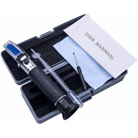 Description du produitMatériel : métal + plastiquePlage de mesure : 0-80 %. Unité minimale : 1 % Précision : 1 % La température de référence est de 20 °C. Accessoires : 1 appareil de mesure, 1 pipette, 1 chiffon de nettoyage, 1 * remarques sur le tournevis :1. Une mesure précise est basée sur un bon calibrage, veuillez calibrer le réfractomètre avant la première utilisation.2. Veuillez garder le réfractomètre sec et propre pour rendre l’instrument précis et durable.Remarque : non recommandé pour le vin ou d’autres produits riches en sucre et autres ingrédients.1. Réfractomètre à alcool à mesure simple et rapide, utilisé pour tester le pourcentage volumique d’alcool du brandy, du whisky, de la vodka, etc. Remarque : non recommandé pour le vin ou tout autre produit riche en sucre et autres ingrédients.2. Lecture ATC précise : réfractomètre à alcool portable avec compensation automatique de la température (ATC), pas besoin de s’inquiéter des changements de température affectant la précision de la lecture. Les réfractomètres utilisés pour mesurer le pourcentage d’alcool en volume tiennent compte des changements de température ambiante et les compensent automatiquement en conséquence pour des mesures précises et reproductibles.3. Utilisation illimitée : c’est un instrument optique portable pour les barmen, les marchands de vin, les fabricants de produits alimentaires, etc. La plage d’échelle est de 0 à 80 % V/V (pourcentage de volume d’alcool V/V), graduation : 1 % v/cinq. Métal + plastique : le réfractomètre à alcool est fabriqué en aluminium non tachant, non corrosif, non réactif, facile à transporter, résistant aux rayures et durable.5. Remarque : Déconseillé pour le vin ou tout aliment riche en sucre ou autres ingrédients.